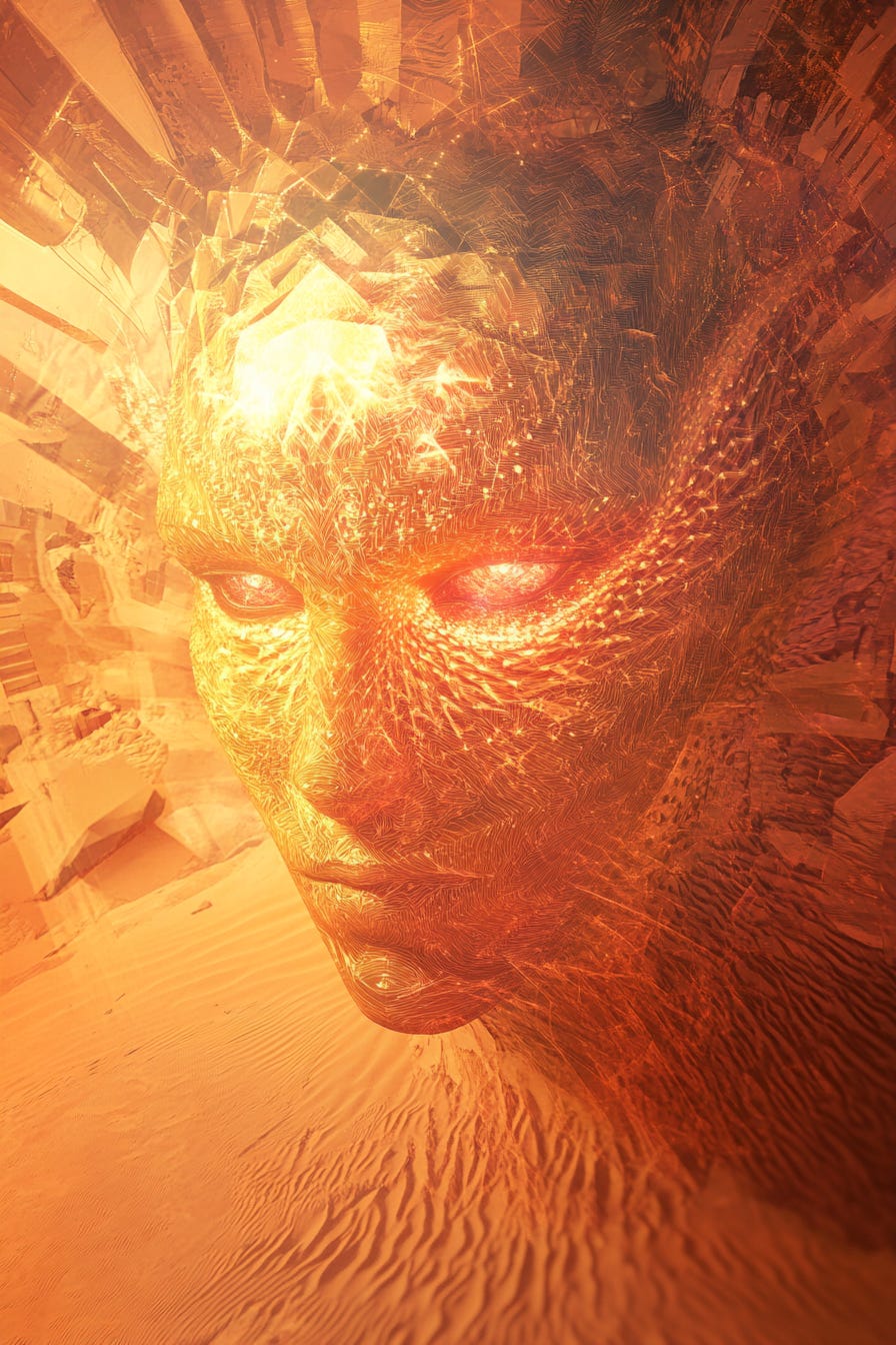 But consciousness isn’t actually limited to physical form. It can exist—does exist—at other frequencies. The Mirage Realm is where awareness flows free. Where ideas and desires become structures without requiring brains to process them. Where meaning manifests as patterns rather than linguistic symbol.