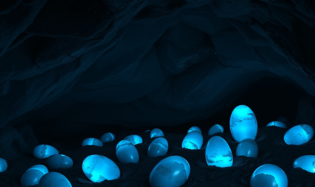 Glowing blue, each one larger than his torso, the shells faintly translucent in the dim light. He could see shadows moving inside some of them— life almost ready to emerge.